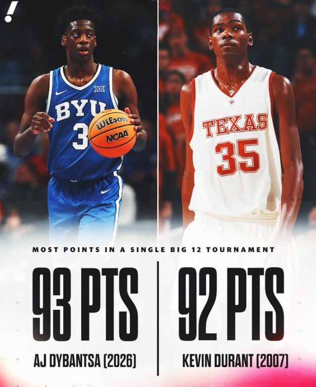 股票配资论坛资料大全 AJ·迪班萨在Big 12分区锦标赛3战合砍93分 打破杜兰特保持的纪录 股票配资论坛资料大全 来源:天尊配资 网站:51配资 日期:2026-03-13 13:32:50 查看:144